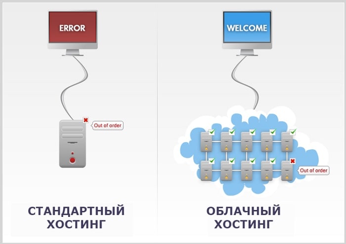 Данный вид - самый гибкий и устойчивый к нагрузкам. Он состоит из нескольких серверов, объединенных в группу. Это значительно увеличивает мощность хостинга и, как следствие, мощность сайта. Стабильность сайта, расположенного на облачном хостинге, обеспечивает взаимозаменяемость серверов. Если начнет лагать или полностью упадет, второй продолжит работу. Ресурсы хостинга могут изменяться в зависимости от нагрузки на него.