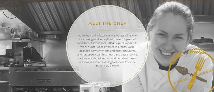 Сторінку розбито на тематичні логічно збудовані блоки. Все, як і належить сайту, що продає. Тут є блоки переваг та вигод, блок меню та блок довіри у вигляді фотографії шеф-кухаря та інформації про нього.