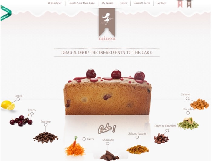 Фішкою сайту стало меню з яскравими фотографіями страв, а також можливістю їх перегляду з різних боків. При наведенні курсором миші на круасан він крутиться навколо своєї осі, демонструючи презентацію страви та свою апетитність.