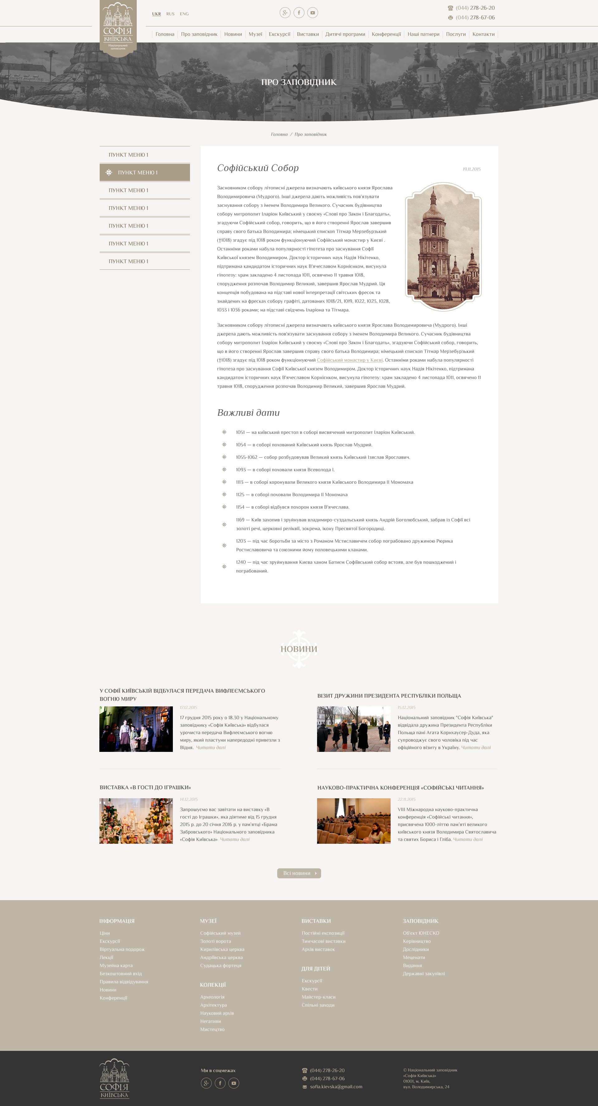 Ґрунтуючись на тематиці, ми створили корпоративний сайт для численних користувачів та поціновувачів історії та культури. Створення сайту для Собору уклало в собі велику кількість категорій та підкатегорій, оригінальних фотографій, статей та блок новин.