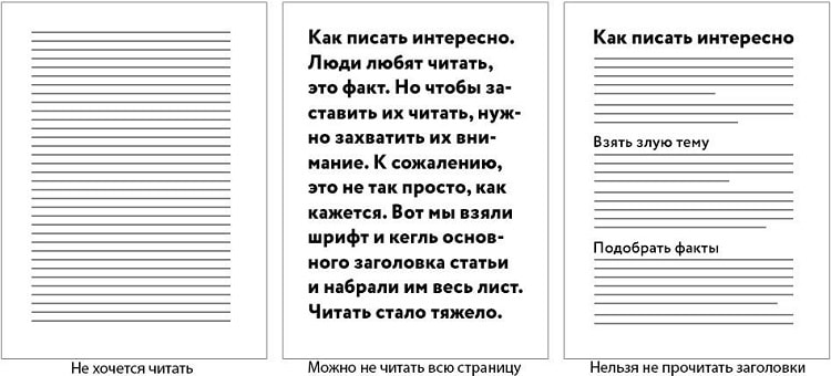 Заголовок тексту є одним із найефективніших продають тригерів. Він має демонструвати явну вигоду, мотивувати людину до прочитання тексту. Повинна бути створена зачіпка в заголовку, яка скаже чому людина має відкрити лист (якщо це розсилання) і прочитати його, дати поняття, що отримає читач. Важливо сказати про найцінніше, інакше текст не зацікавить і, як наслідок, не принесе користі.
