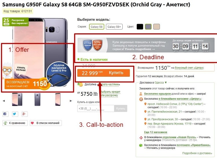 C (call-to-action) – закликаємо зробити дію тут і зараз.