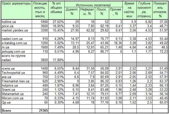 Ще одним дуже дешевим джерелом клієнтів можуть стати різні прайс-агрегатори. Частина з агрегаторів і статистика з них нижче.