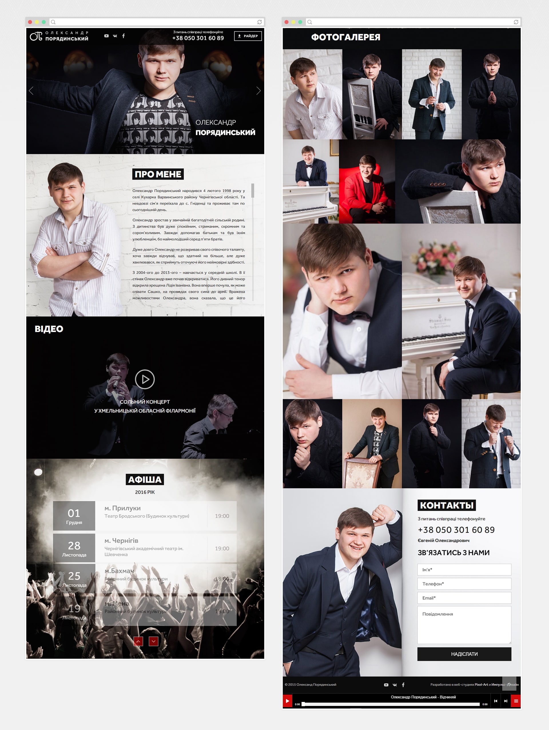 Створення Landing page для співака та артиста Олександра Порядинського | Impulse Design