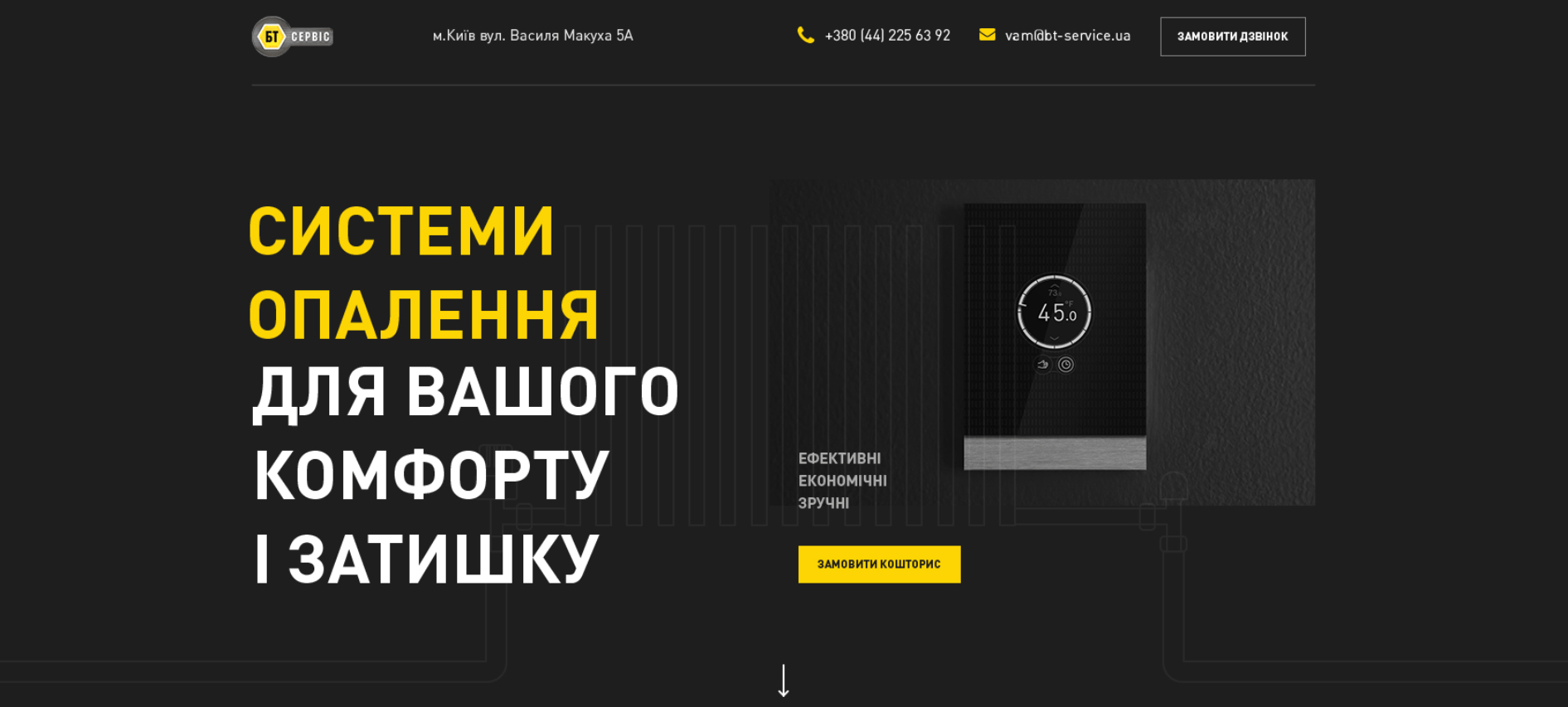 Створення Landing Page системам опалення "BT service" - Impulse Design