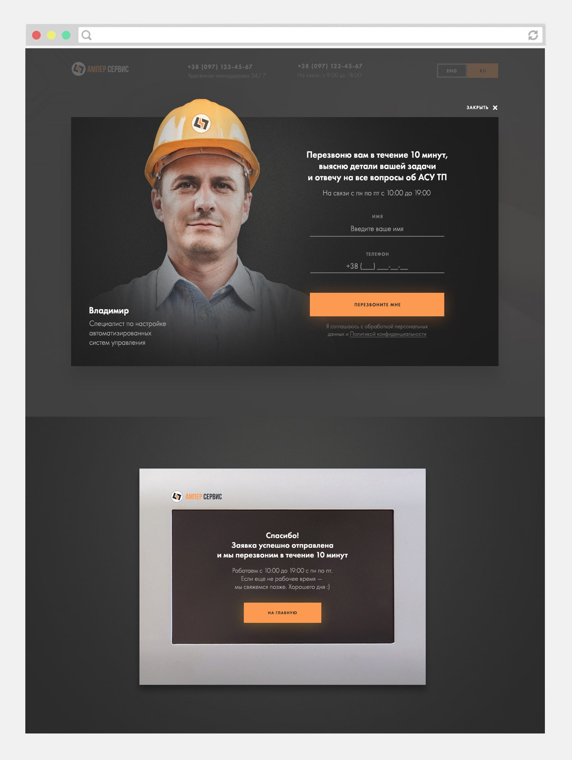 Landing Page АСУ ТП "Amper Service"