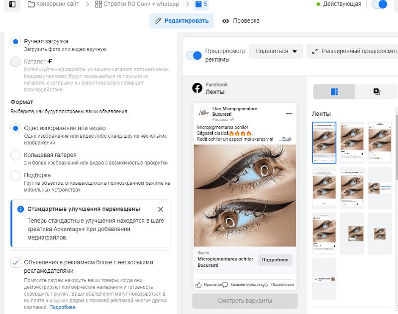 - запустити оголошення з різним контентом, що включає фото, відео, текст та посилання;
