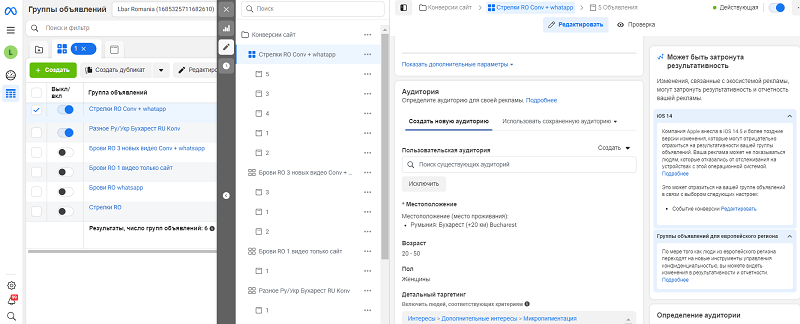 - ADS manager дозволяє створювати рекламу як у ФБ, так і в Інстаграм, змінюючи різні налаштування та отримуючи розгорнутий аналіз рекламної кампанії.