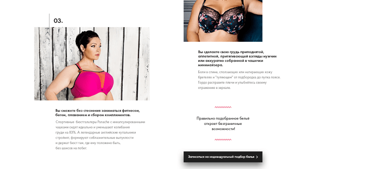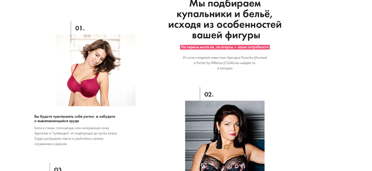 Кожен блок – точне попадання в біль цільового споживача. Відразу за ним - правильне та грамотне вирішення переживань клієнтів, заснованих на їхньому дискомфорті.