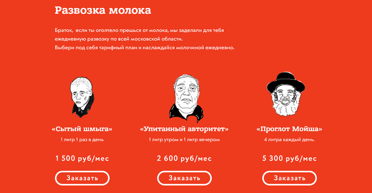 Сайт присвячений послузі з доставки молока. Але він виконаний у жартівливій формі та орієнтований лише на малу групу цільової аудиторії.