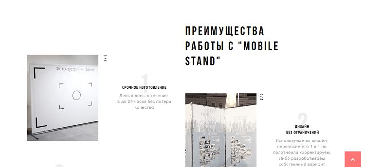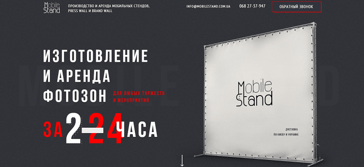 Приклад ще однієї нашої роботи, яка заслуговує на увагу. Лендинг продає послугу з продажу чи оренди мобільних стендів/фотозон. За допомогою цього односторінника потенційний клієнт знаходить усі відповіді на свої запитання.
