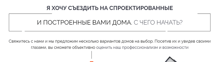 Далі – блок "плюшок". Та плюшка, яку рідко пропонують конкуренти - можливість клієнту на власні очі подивитися на побудовані компанією будинки. Така послуга не зобов'язує відвідувача замовляти послугу. Але за допомогою форми зворотного зв'язку відвідувач стає лідом.