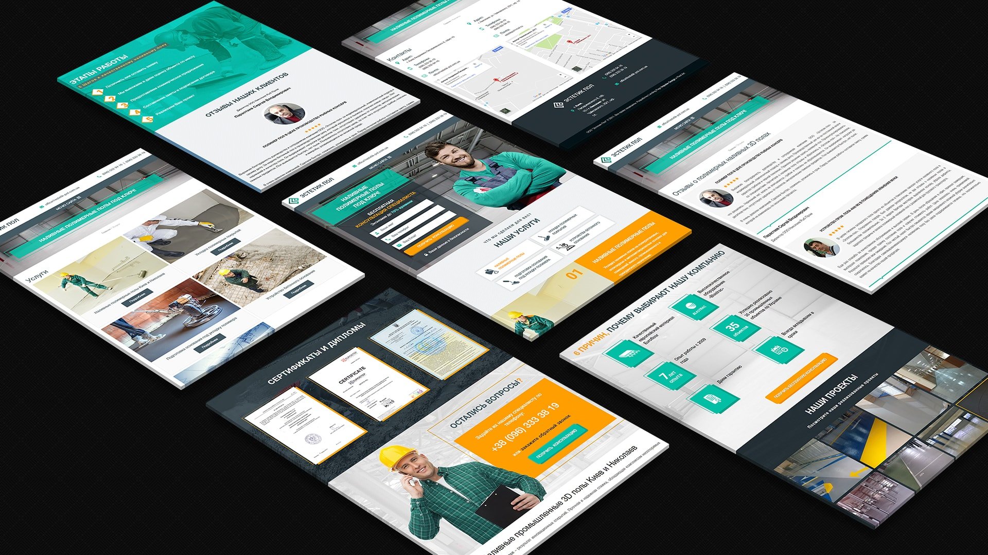 Створення сайту для компанії поєднує ключові переваги Landing page, закладеного в структуру головної сторінки, і кращі сторони корпоративного сайту. Завданням стояло створення ресурсу, який зможе розкрити конкурентну перевагу фірми зі встановлення наливної підлоги, дати відповіді на запитання відвідувачів і залучити цільовий трафік, конвертуючи його в клієнтів.
