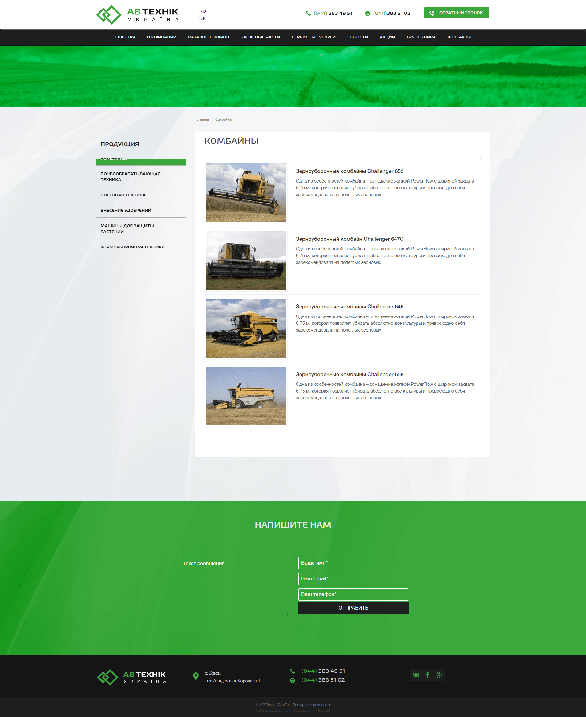 Створення сайту для компанії з продажу сільгосптехніки